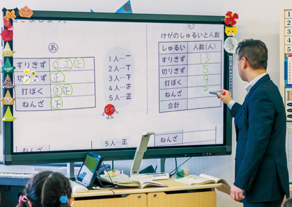 子どもたちは家庭でスマートフォンやタブレットに触れる機会が多いこともあり、電子黒板にはとてもすんなりと馴染んでいます。特に説明をしなくても、教員が使っているのを授業中にちょっと見ただけで、電子黒板に書き込んだりすることは、普通にやっています。電子黒板を使う授業は、児童も大変楽しみにしています。表情も生き生きとして、集中力も増すように見えます。